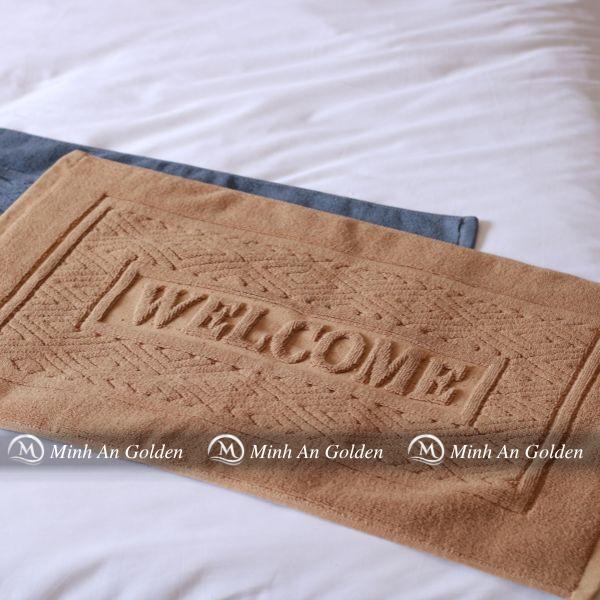 Chất liệu làm nên sự mềm mại và khả năng thấm hút của dòng thảm chân màu dập welcome cao cấp là sợi cotton. Khác biệt với thảm PVC rối chống nước, thảm sợi được thiết kế để tối ưu hóa khả năng hấp thụ độ ẩm, thường được đặt trong phòng ngủ, phòng tắm hoặc cửa ra vào phòng khách sạn.