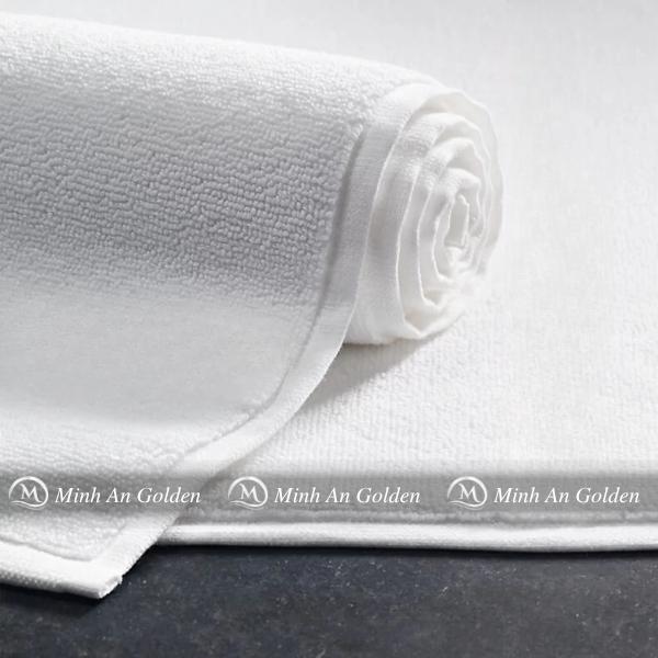 - Độ dày (GSM): Thảm lau chân trắng Cotton chất lượng cao thường có trọng lượng sợi lớn để tăng độ êm ái, khả năng thấm hút và sự sang trọng.